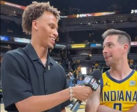 赛后,本赛季抢断王戴森-丹尼尔斯采访了本场送出5次抢断的步行者球员麦康纳。